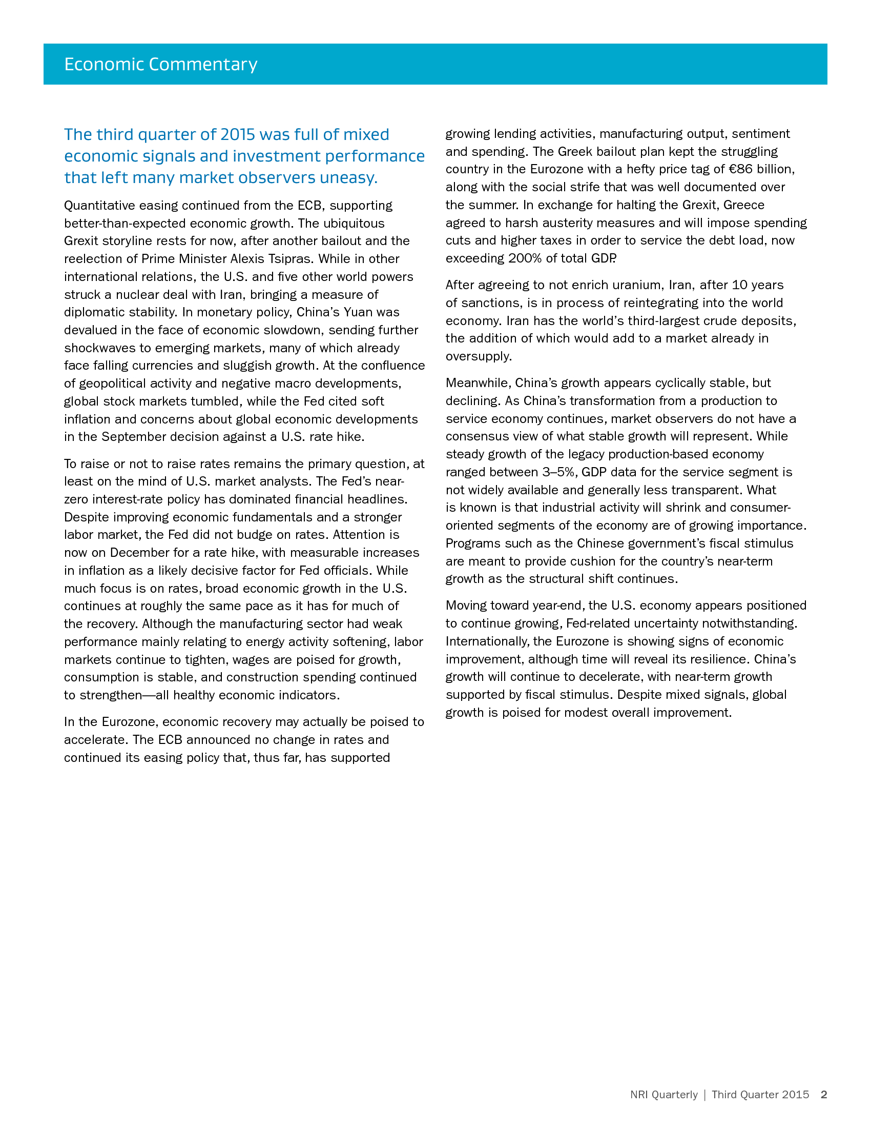 Investment Review and Outlook - September 30, 2016