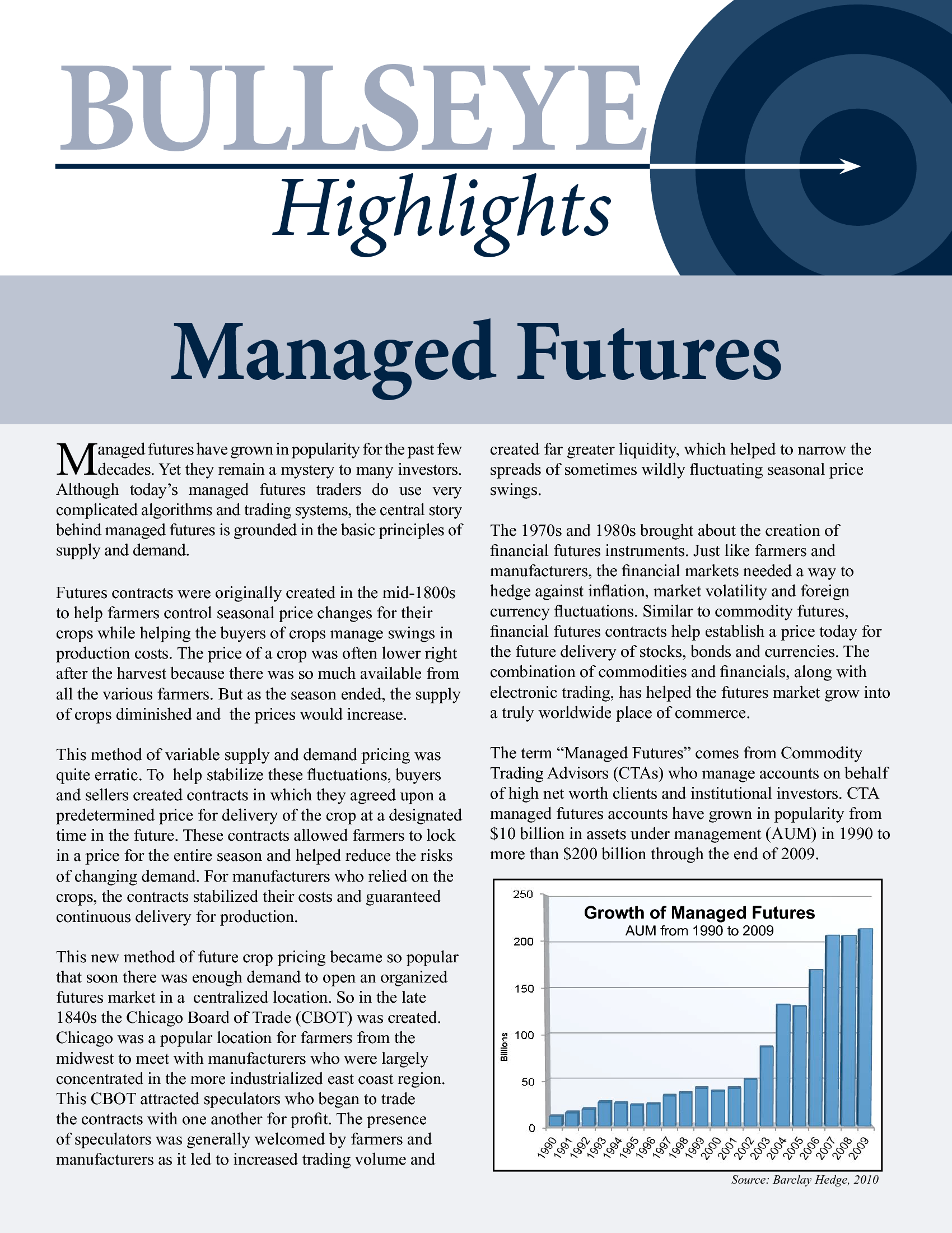 managed futures. Many private managed futures investments require exclusive pre-qualification guidelines or large