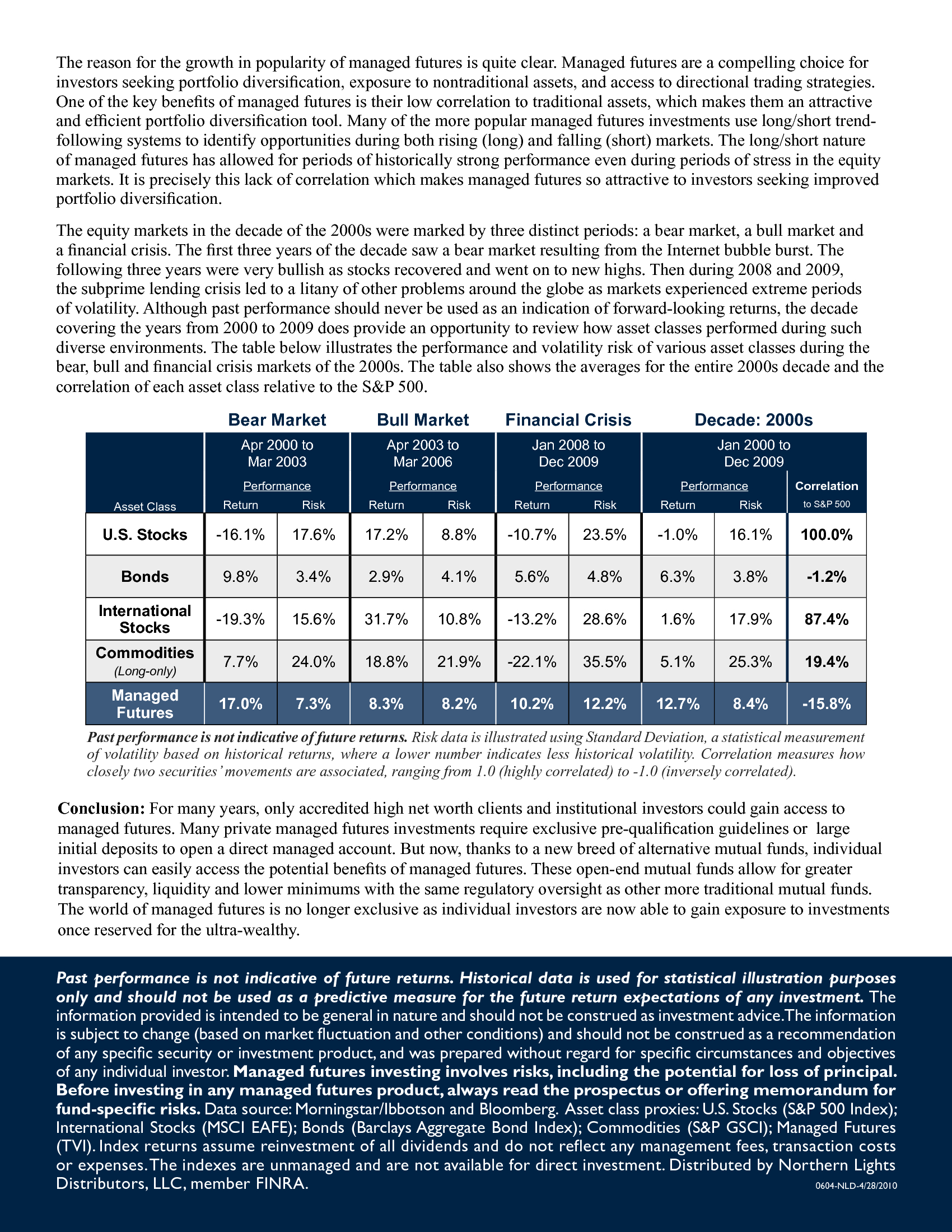 of managed futures has allowed for periods of historically strong performance even during periods of stress in the equity
