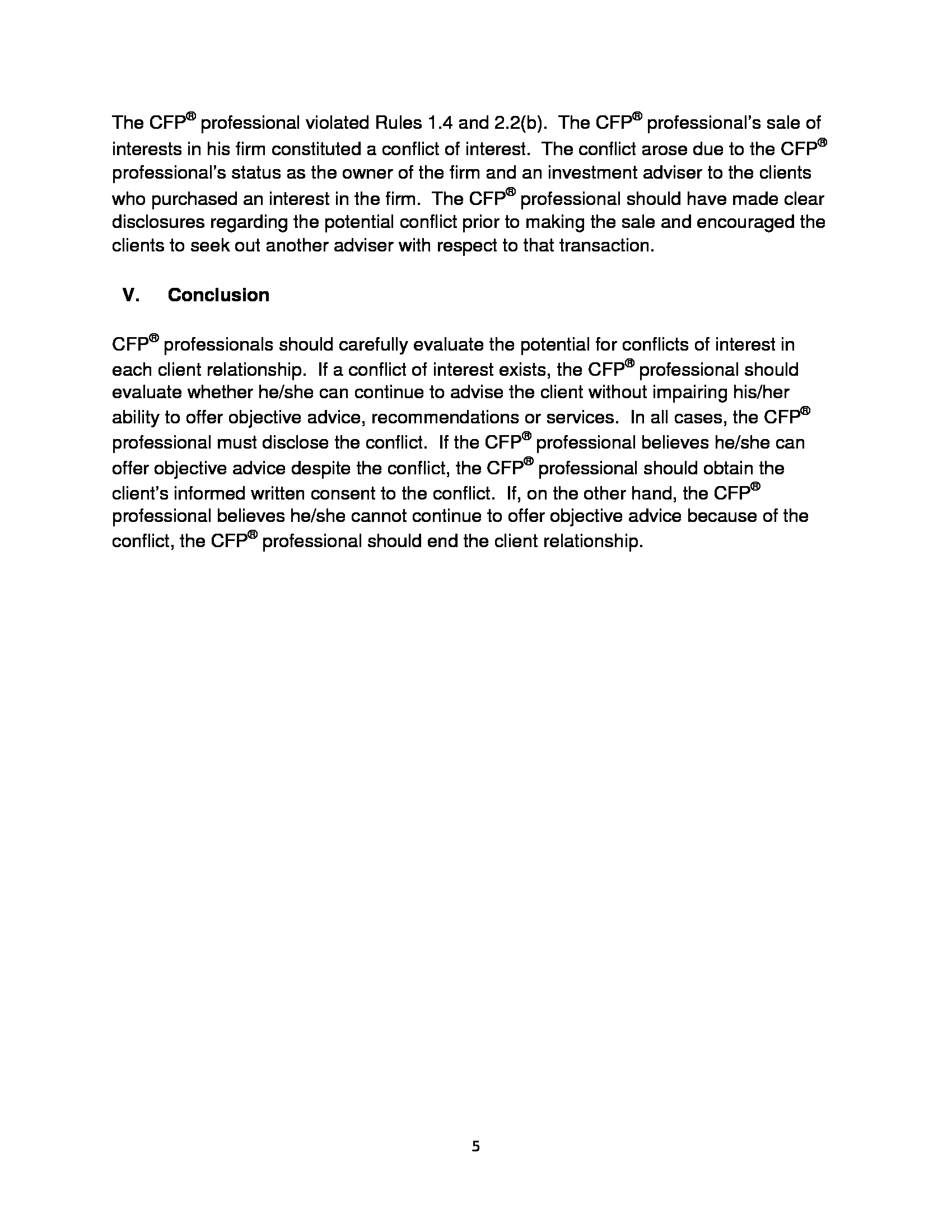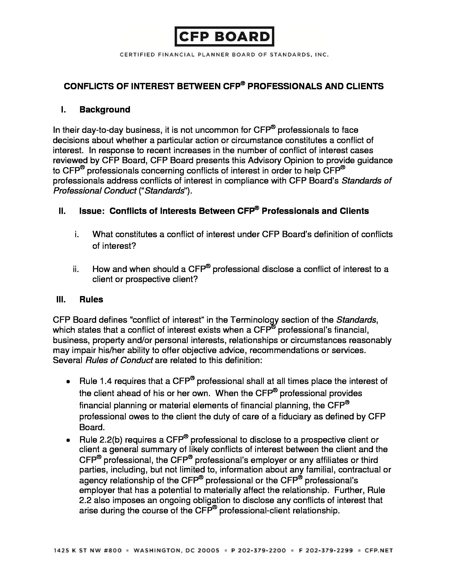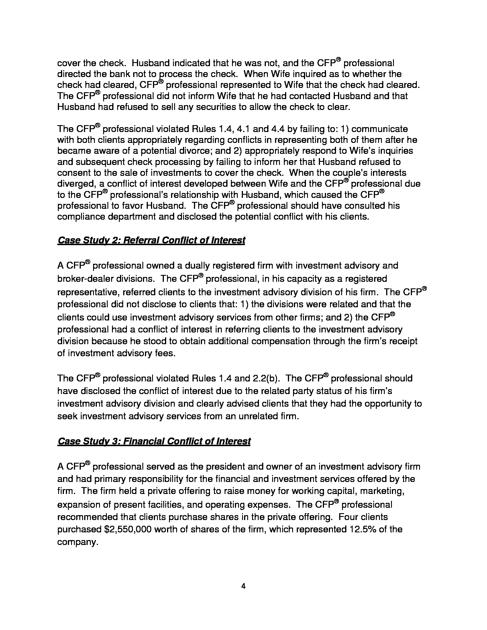 Conflicts Of Interest Between Cfp®Professionals And Clients